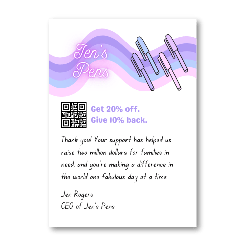 ShipBob can print standard marketing inserts on demand for any order. Rather than spending time and money to source and ship pre-printed inserts, ShipBob lets you upload a design of your choice (which you can update at any time) and we’ll print it in colour on 4×6 inch cardstock at pack.