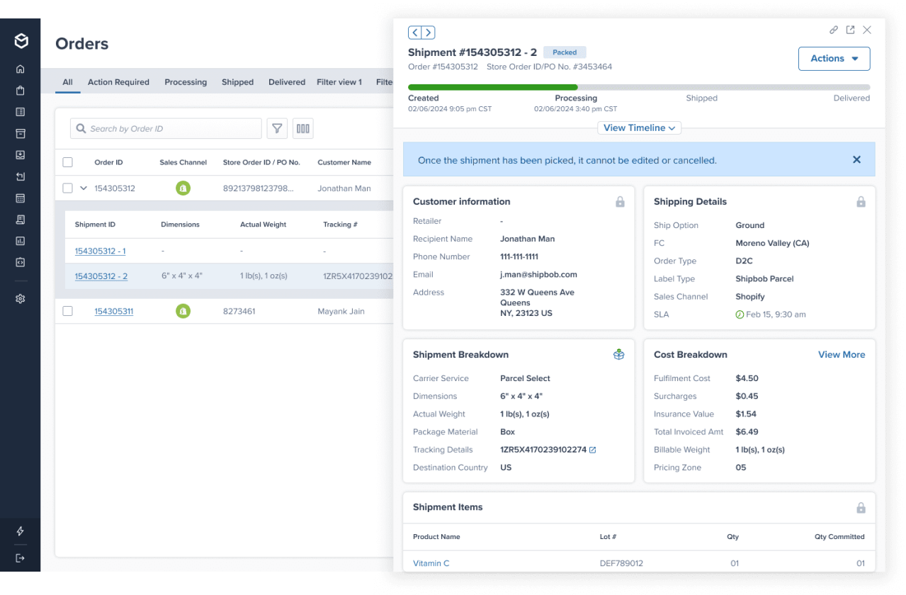 ShipBob’s powerful software features order management system (OMS) capabilities that centralise your order processing and inventory management. Through ShipBob’s dashboard you can: