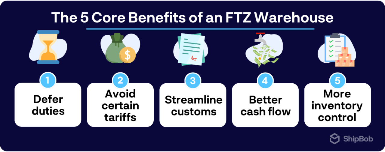 Practical costs still apply, so as long as you store inventory in an FTZ warehouse, you will have to pay warehouse fees and inventory carrying costs. Most businesses use FTZs for strategic inventory positioning rather than long-term storage, balancing duty savings against storage expenses.