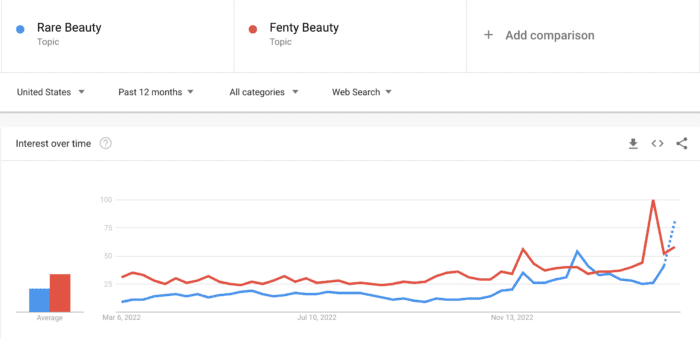 By using tools like Google Trends or TikTok Creative Centre, you can identify popular products based on consumers’ search queries and interests. You can also see historic data to see if products are becoming more or less popular.