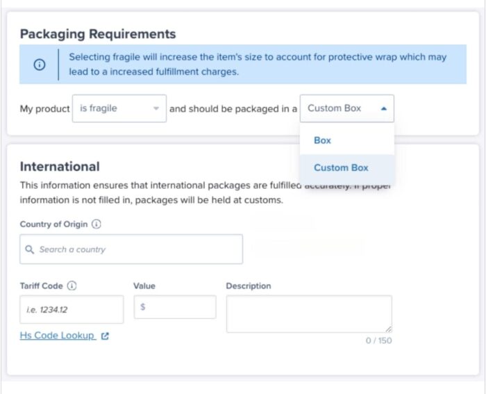Through ShipBob’s dashboard, you can choose whether each SKU is fragile, foldable, a poster, a book, or something else entirely. After choosing the product type, ShipBob will automatically adjust the packing process based on your preferences.