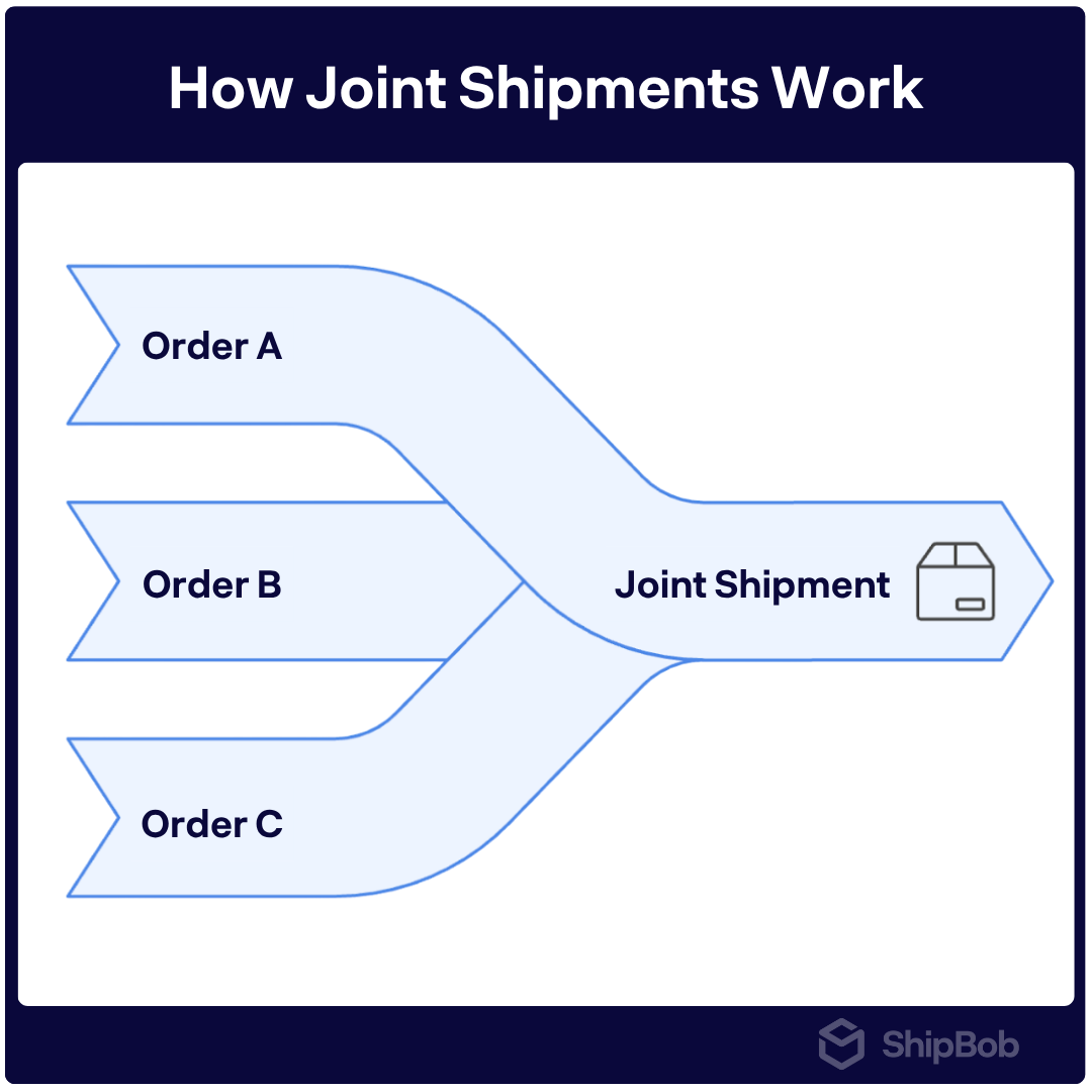 A joint shipment is when multiple orders or products are combined into one shipment to make shipping cheaper, faster, and more efficient. Instead of sending out separate packages for each order, like with split shipments, businesses group orders heading to the same area into one delivery. This helps cut down on transportation costs and speeds up transit times.