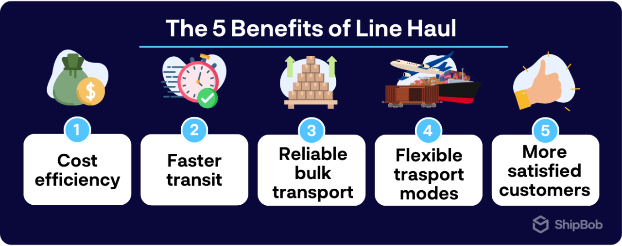 Consolidating shipments through line haul reduces per-unit shipping costs, while scheduled routes eliminate the need for premium fees associated with expedited or last-minute shipping.