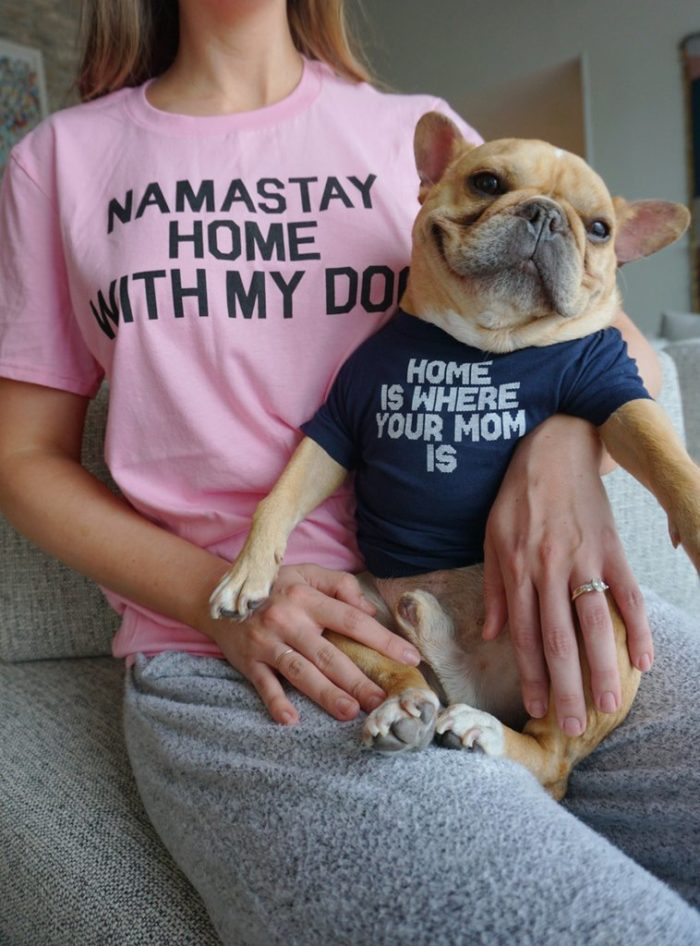 This gift is perfect for the quarantine and promoting social distancing practices. It comes with two tees: the human shirt says “Namastay home with my dog” and the dog shirt says “Home is where your mom is.” Every dog tee on the store can be worn with the design on the front or back of the shirt.