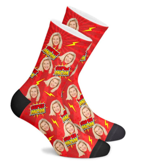 FaceSocks – Custom Super Mom Socks ($24.95; on sale)