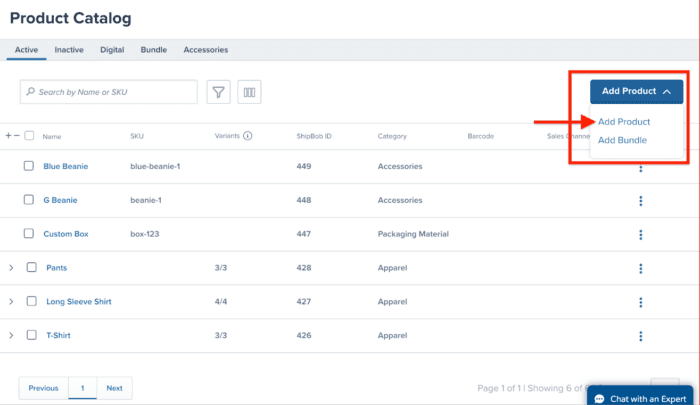 ShipBob’s Product Catalogue assigns a unique SKU identifier for each product to streamline the SKU management process. These SKUs stay consistent across sales channels, which provides your brand with a single source of truth and minimal confusion.
