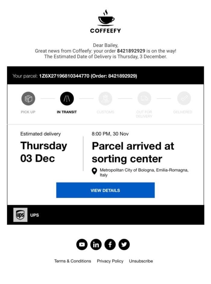 Shipping delays may happen for a variety of reasons (some controllable and others not), but this estimate helps the customer plan for it. This makes ecommerce order tracking all the more valuable.