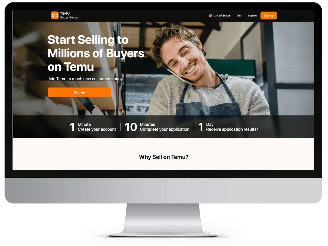 - Visit the Temu Seller Centre to sign up.