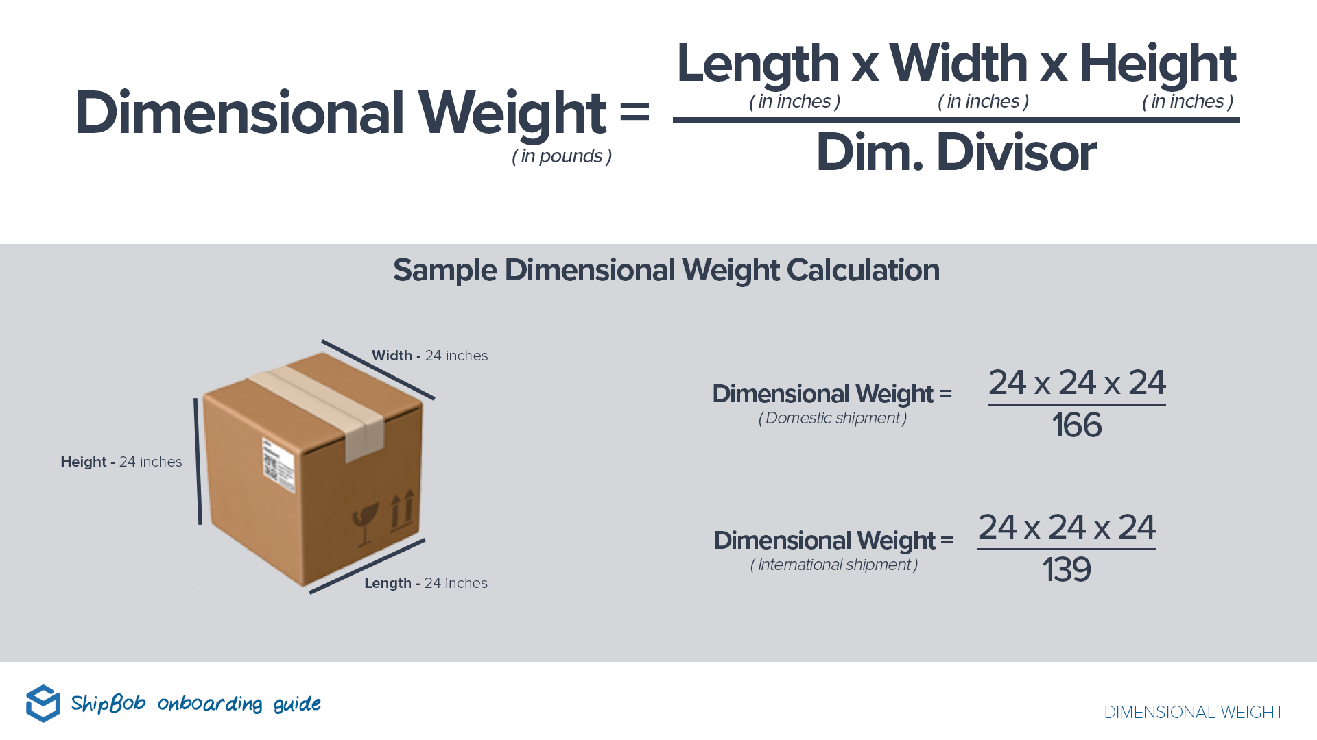 If you use packaging that’s too large for your items, you may be charged for the dimensional weightof your package, instead of its actual weight. In a nutshell, dimensional weight (or “DIM,” for short) refers to the amount of space your package takes up on a courier’s truck. Shipping companies will charge you whichever “weight” that will make them more money: your package’s actual weight or its dimensional weight.
