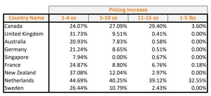 We are seeing similar delays across other couriers due to limited air network capacity, including DHL eCommerce, UPS Mail Innovations, and Asendia. These countries include: