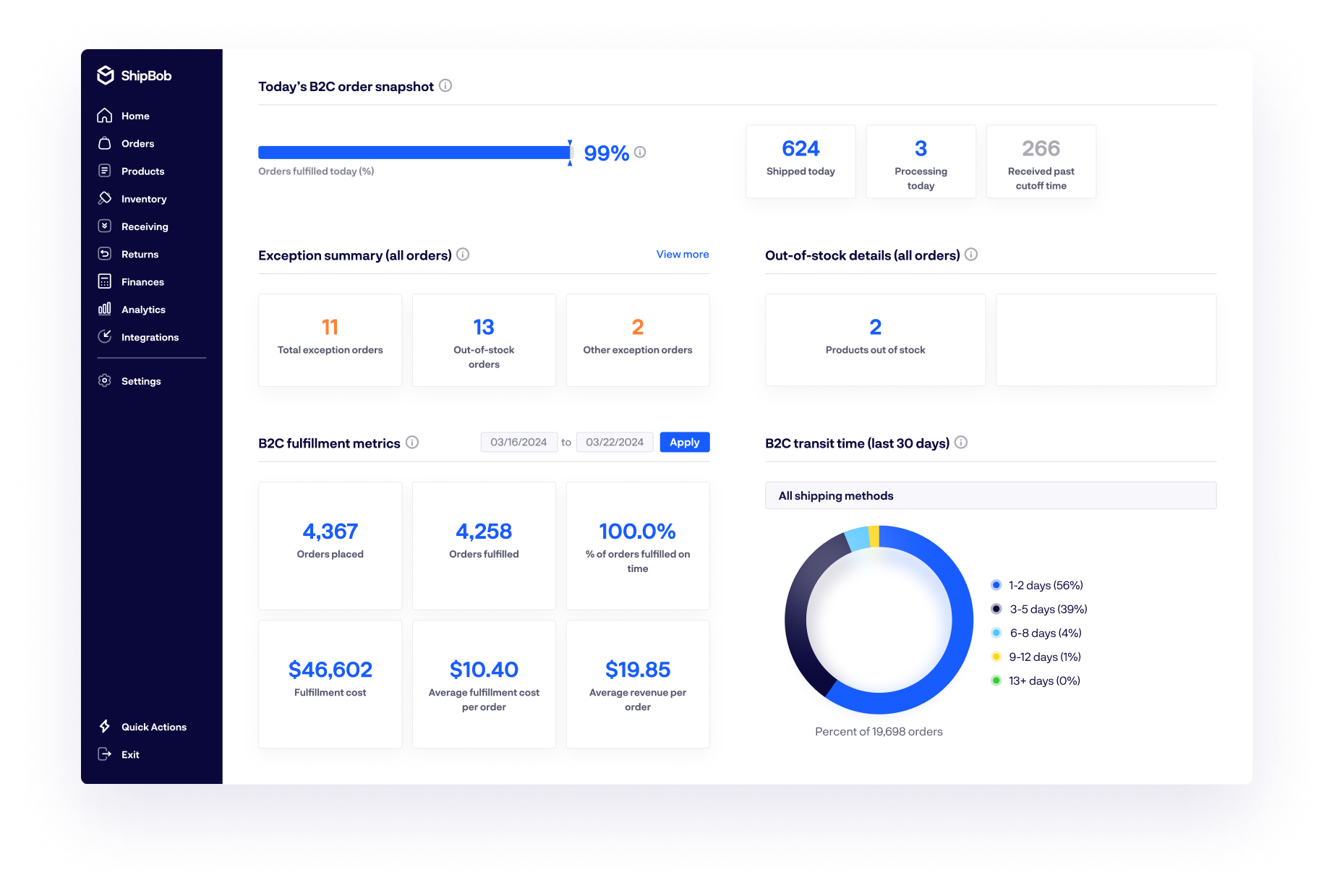 - Details about ShipBob’s omnichannel capabilities, broad partner ecosystem, advanced Developer API, robust customisation suite, network of global fulfilment centres, and more!