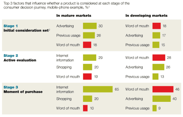 In fact, word-of-mouth is amongst the 3 most powerful influential factors at all points of a buyer’s journey (see chart below).