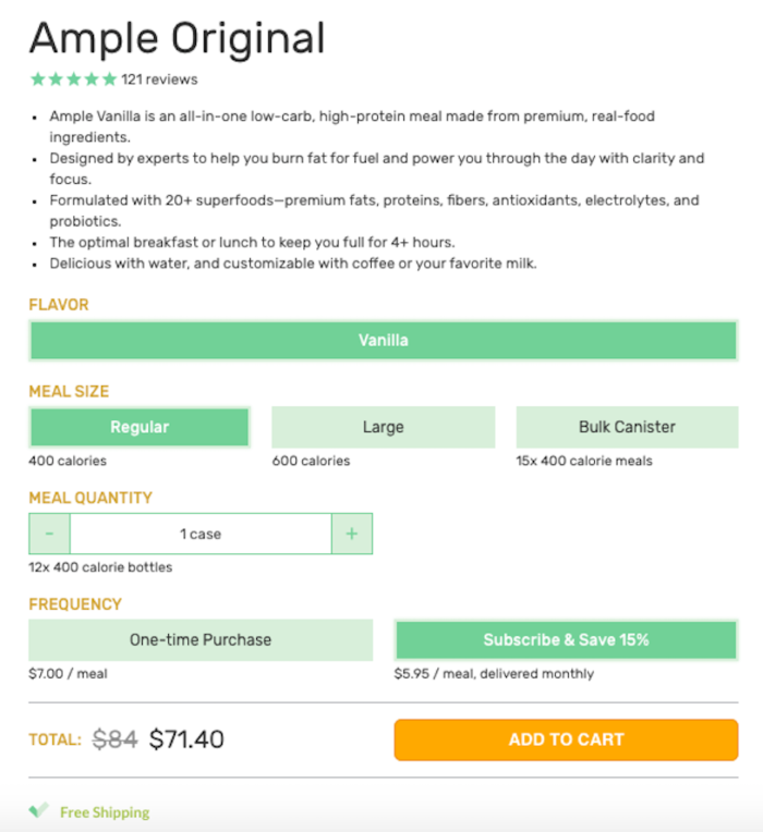 Anchor pricing is often used for bundles or subscription orders by showcasing the cost savings a customer gets when they but more or subscribe, rather than making a one-off purchase. In these cases, a discount is offered for committing to multiple items or orders and the customer can test the savings at checkout to verify they would save money this way.