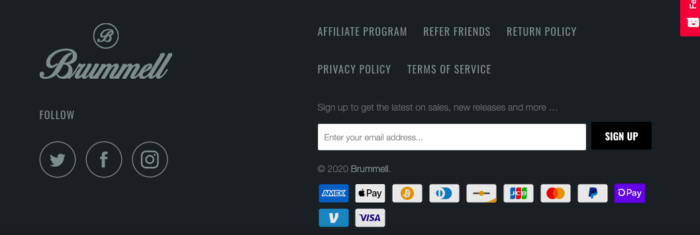 If you’re looking for a payment provider to assist in international payment processing, be sure to look for one that has a strong global reputation. To signal trust to customers on the different payment processing options available, you could add their logos to the footer of your website.