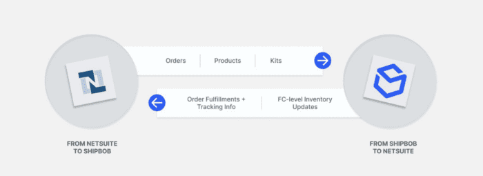 By using ShipBob’s direct integration with NetSuite, customer orders from NetSuite sync to ShipBob and fulfillment information from ShipBob syncs back to NetSuite.