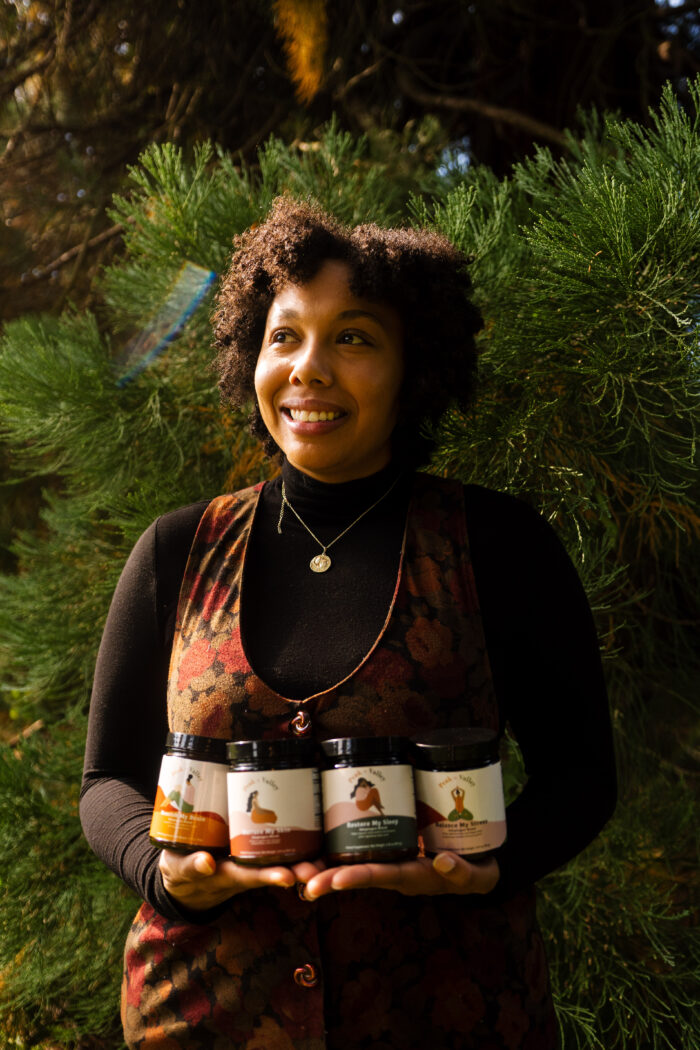 Having grown up with a mother who taught her about holistic wellness, Nadine began researching herbal and botanical solutions to her health issues. Soon, she discovered adaptogens: plant substances found in herbs and mushrooms that help balance hormones and manage stress.