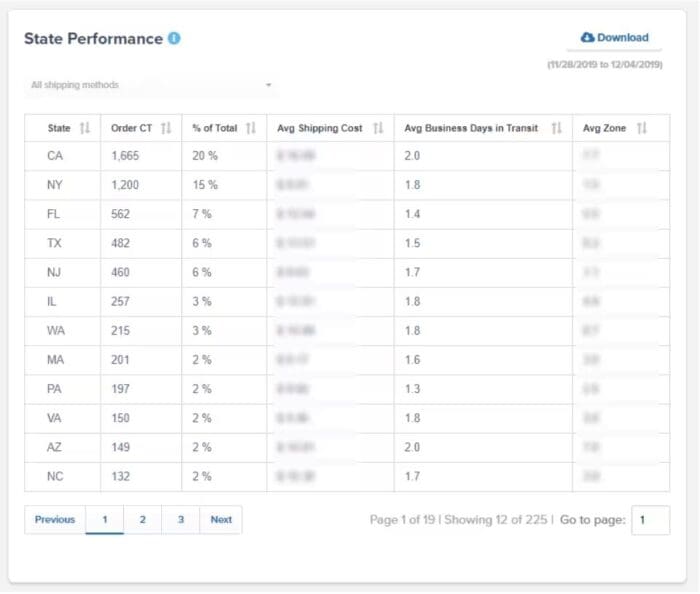 For example, ShipBob’s dashboard automatically tracks key shipping metrics across methods and states, and even provides data on the ideal inventory allocation and distribution for your brand based on your shipping history.