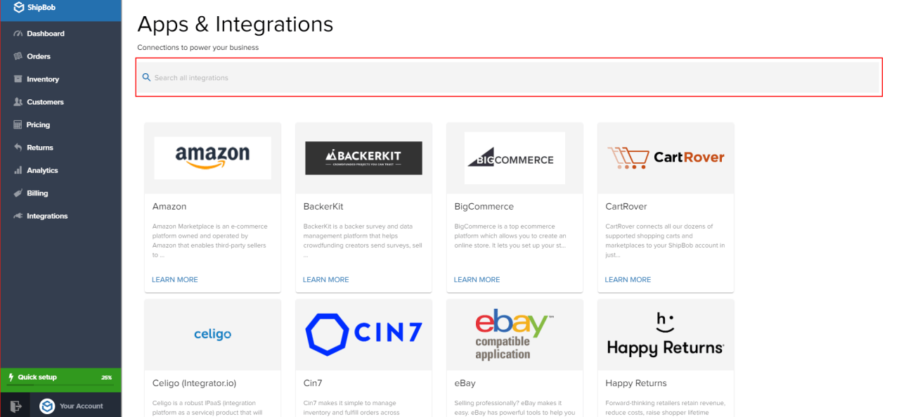 ShipBob’s proprietary order fulfillment solution is hosted, providing automatic updates, tight security, and compatibility with any leading ecommerce platforms and other ecommerce tools. Because it’s cloud-based, ShipBob’s software requires no IT resources or strain and helps lower logistics costs.