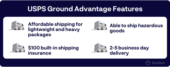 Ecommerce businesses can benefit from USPS Ground Advantage by taking advantage of its low cost and $100 of insurance per package. For a business sending bulk packages every month, the amount of savings incurred by switching to Ground Advantage can add up to hundreds, if not thousands of dollars per month.