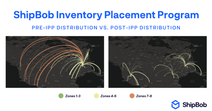 ShipBob’s Inventory Placement Program (IPP) strategically places inventory across its fulfillment centers, optimizing stock distribution to reduce delivery times and shipping costs. For example, ecommerce businesses can allocate high-demand items to be closer to key customer hubs, ensuring quicker delivery.