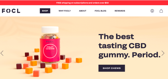 FOCL CBD brand does a great job at promoting ‘Free Shipping’ in a top bar (see below).