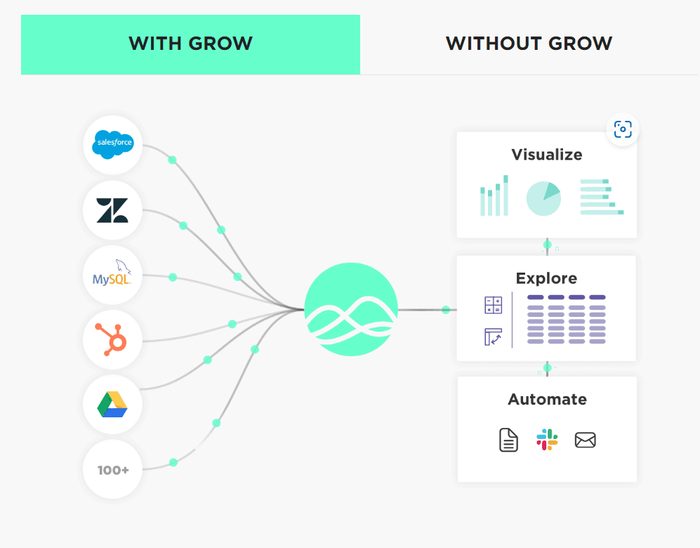 Grow combines ETL, data warehousing, and visualization in one easy-to-use platform.