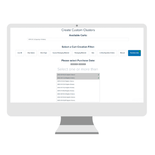For ShipBob WMS merchants who want to pick orders strictly in order of their purchase date, we’re releasing a new custom cluster option to create custom cluster carts by order purchase date (available by late October).