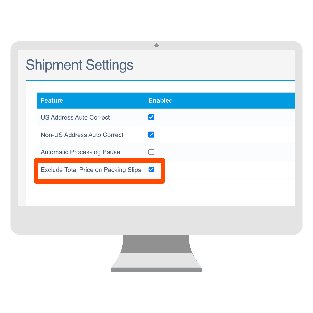 Ensure your customers’ gift recipients aren’t seeing the order value on their packing slips with a new setting to exclude the total price on all packing slips. Enable this setting by navigating to the Shipment Settings link on the left-hand navigation bar in your ShipBob dashboard.