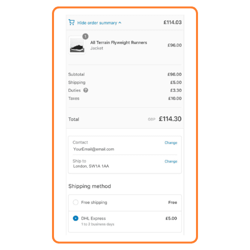 Merchants with a Shopify store can confidently scale globally using ShipBob’s DDP solution via Managed Markets. This allows them to manage multiple markets from a single dashboard and provide hyper-localized shopping experiences that delight shoppers and boost international conversion rates (by an average of 40% in one year).