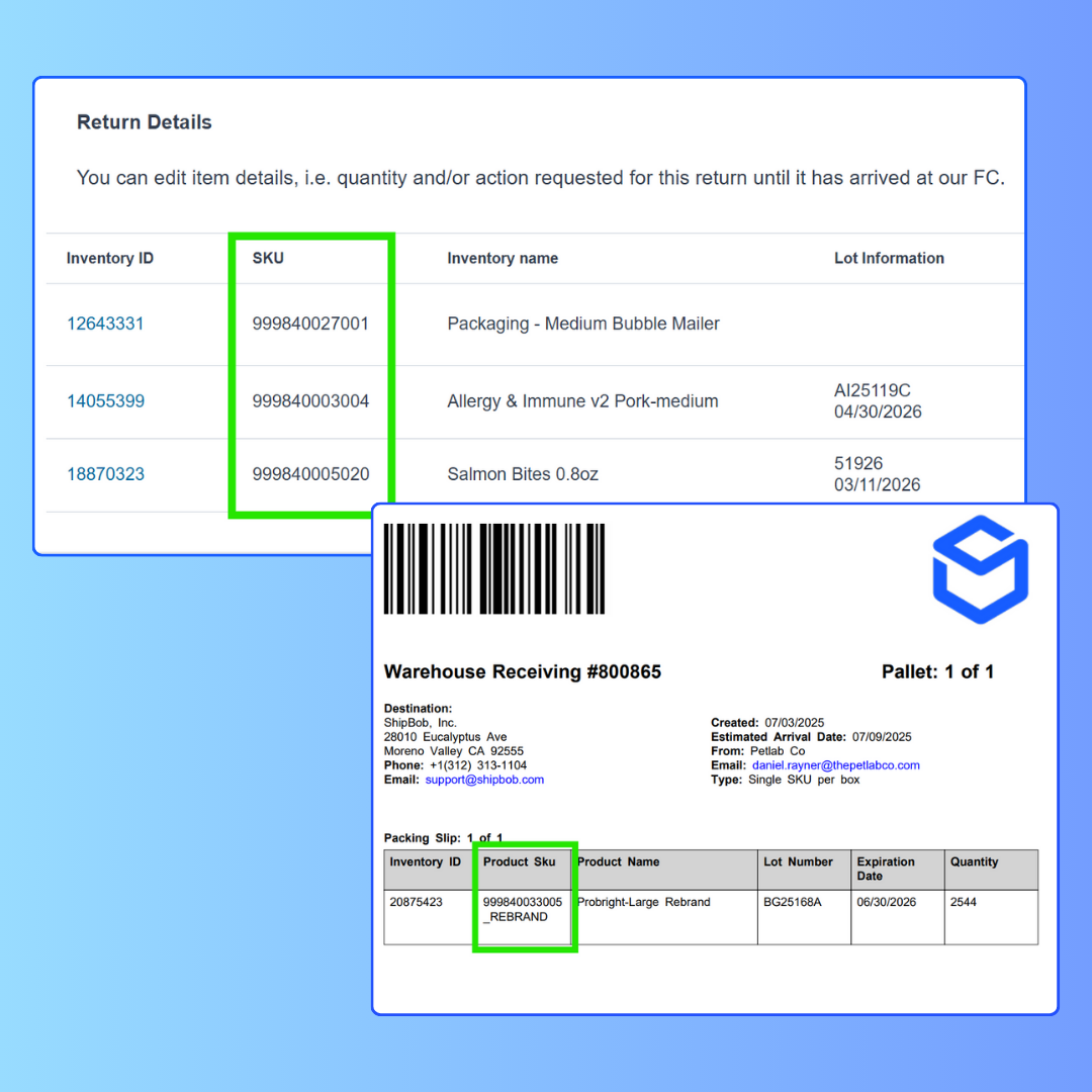 Coming early August, you will be able to see variant SKUs on WROs and the return details page in the ShipBob dashboard, enabling faster and more accurate receiving and returns processing. With clearer product identification, merchants can avoid errors and delays and improve efficiency across more of the supply chain.