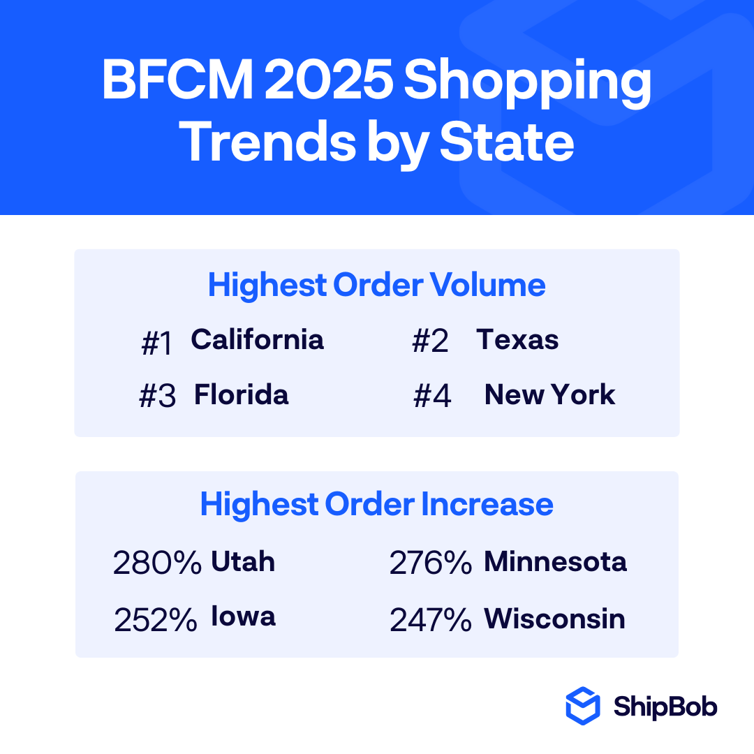 While BFCM spikes order volumes across the country, some states are bigger shoppers than others.