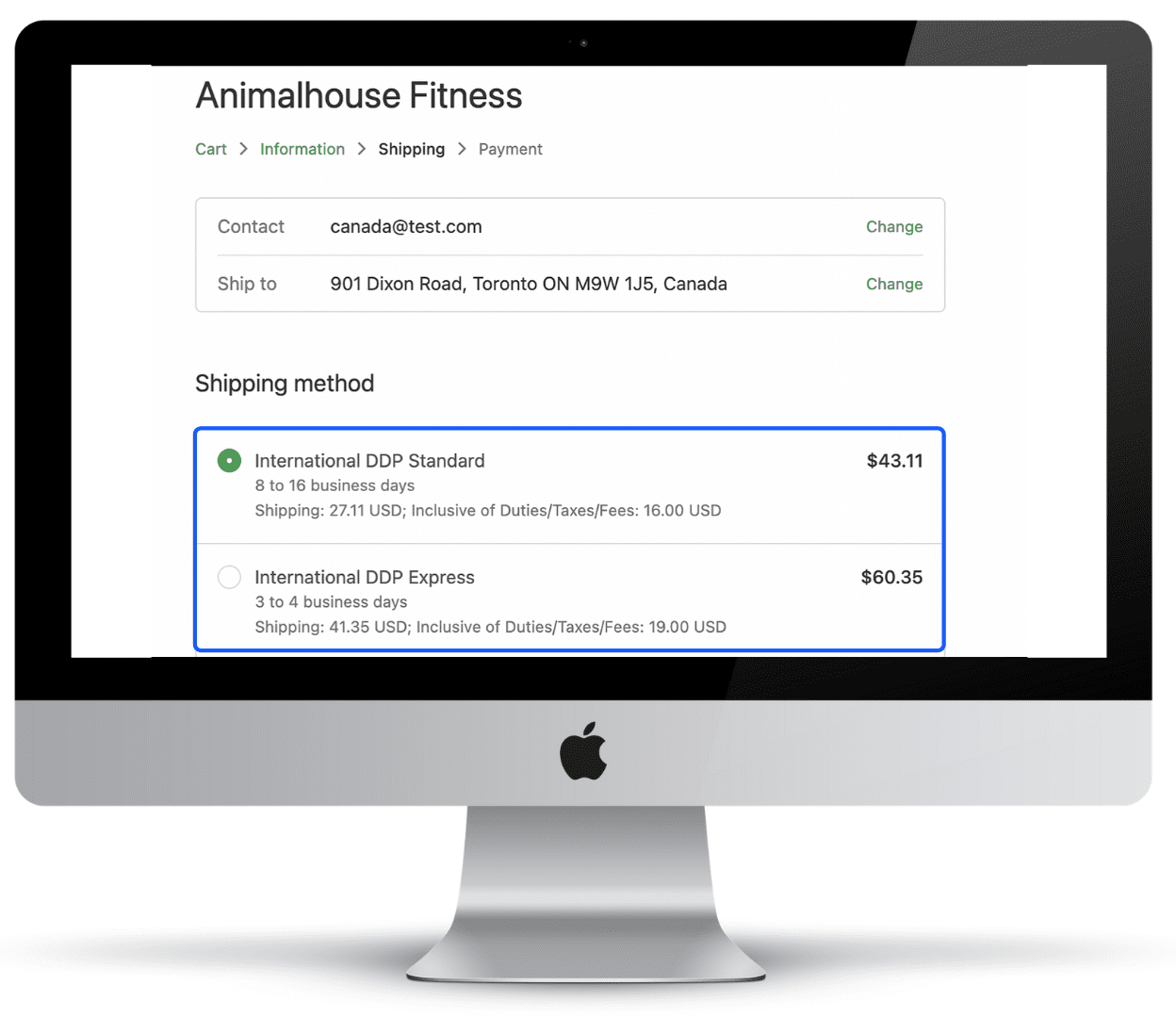 Delivery duty paid (DDP) and delivery duty unpaid (DDU) options