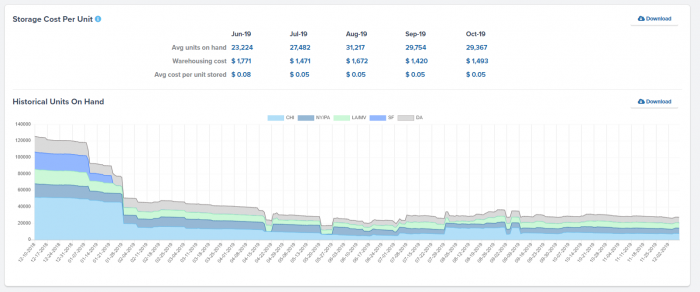 - Accounting & Storage Costs: View storage cost per unit and a detailed storage billing summary.