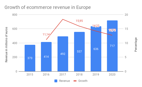 European ecommerce sales are projected to reach 717 billion euros in 2020.
