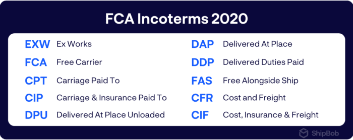 | FCA – Free Carrier | FOB – Free on Board |
