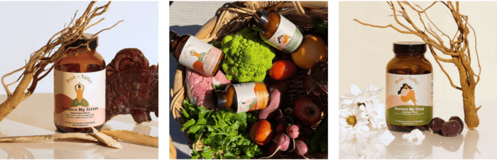 Having grown up with a mother who taught her about holistic wellness, Nadine began researching herbal and botanical solutions to her health issues. Soon, she discovered adaptogens: plant substances found in herbs and mushrooms that help balance hormones and manage stress.