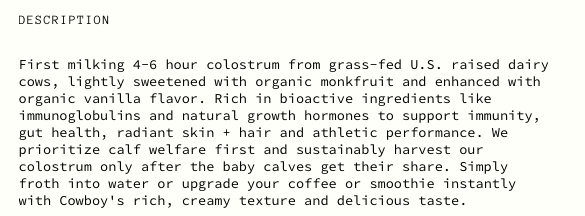 For example, ShipBob customer, Cowboy Colostrum describes their product this way: