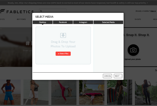 Fabletics built out a specific page on its website to feature these posts and testimonials from other places. It’s highly visual and when people go there, they’re encouraged to provide additional photos showcasing themselves in the clothing. Customers participate because it’s cool to see themselves featured on a huge brand’s website.