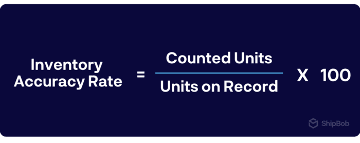 Inventory Accuracy Rate = (Counted Units / Units on Record) x 100